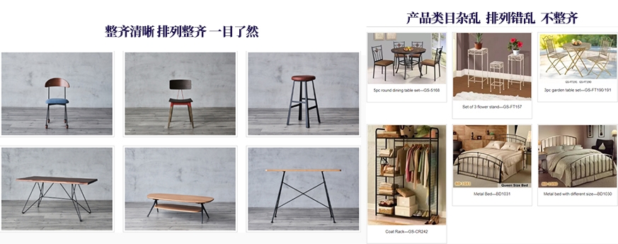 低质量主图会使网站显得杂乱无章,客户兴趣全无,图片要高清且排列整齐才能够吸引客户眼球。